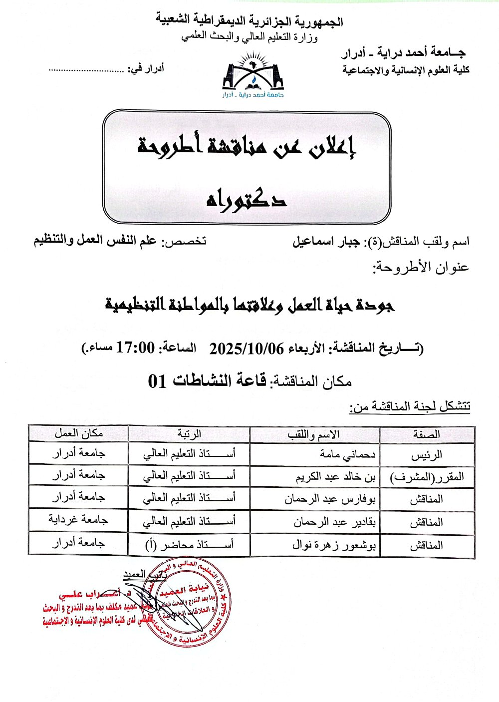 الإعلانات إعلان عن مناقشة دكتورة By ahmed001 On سبتمبر 24, 2025 0 135 Share إعلان عن منقشة دكتورة 0 135 Share